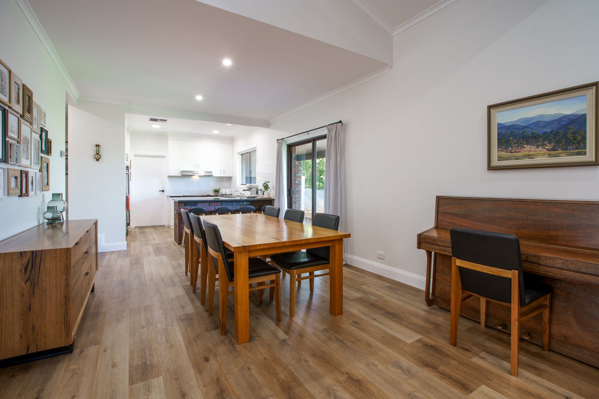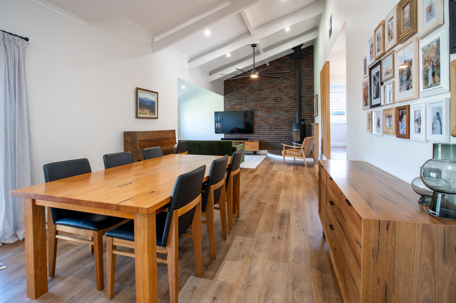 - Large open plan lounge room and dining room with cathedral ceiling