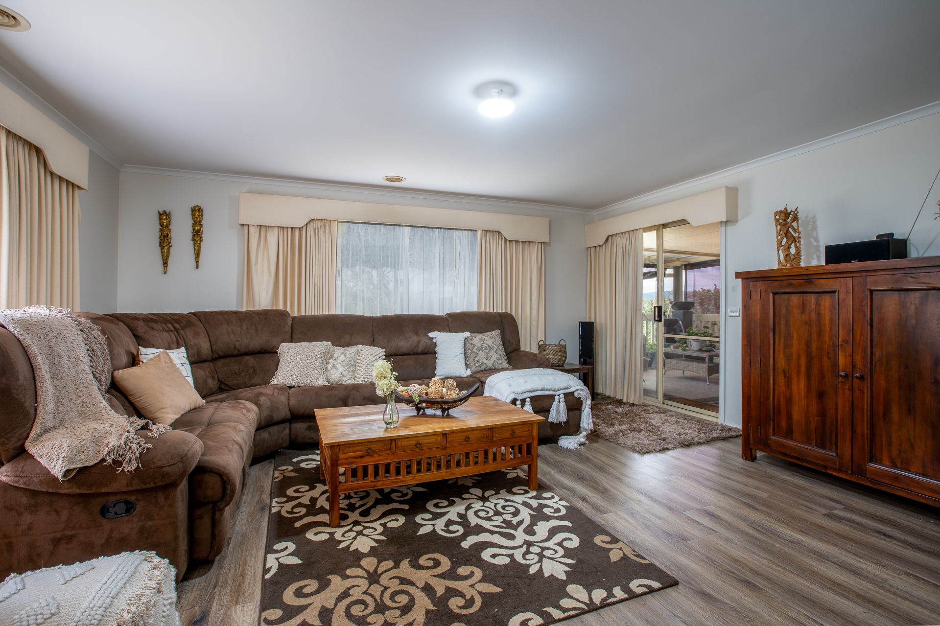 Situated at 8 Mountain View Drive, Lavington, this expansive residence is a surprise with its generous space and thoughtful layout. Deceptively modest from the front, it reveals multiple spacious living areas designed for comfort and functionality, offering flexibility for family gatherings, relaxation, or hobbies.