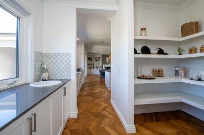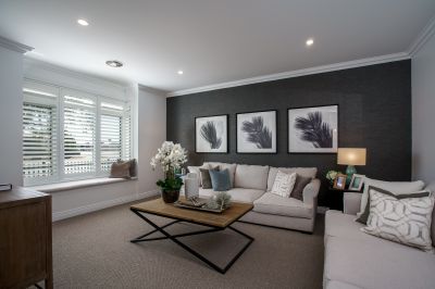 Stepping through the front door, you're welcomed by a sense of grandness and warmth. The 9-foot ceilings, decorative cornices, and elegant skirting boards add to the home's inviting presence and reflect the craftsmanship synonymous with Peter Bowen Homes. The interiors exude understated sophistication, with natural tones, soft textures, and an abundance of natural light that create a calm and spacious atmosphere.