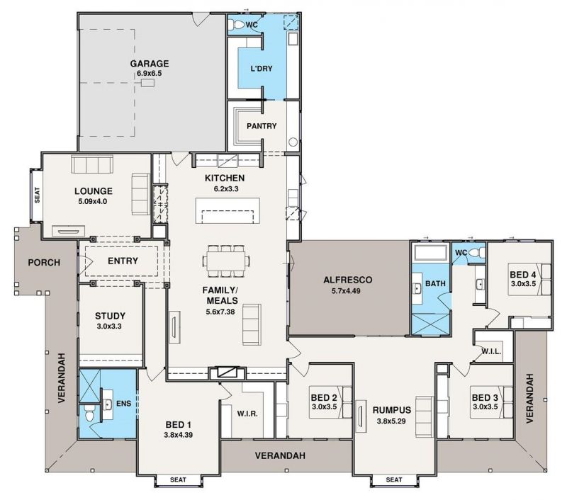 - Separate rumpus room with bay window seating